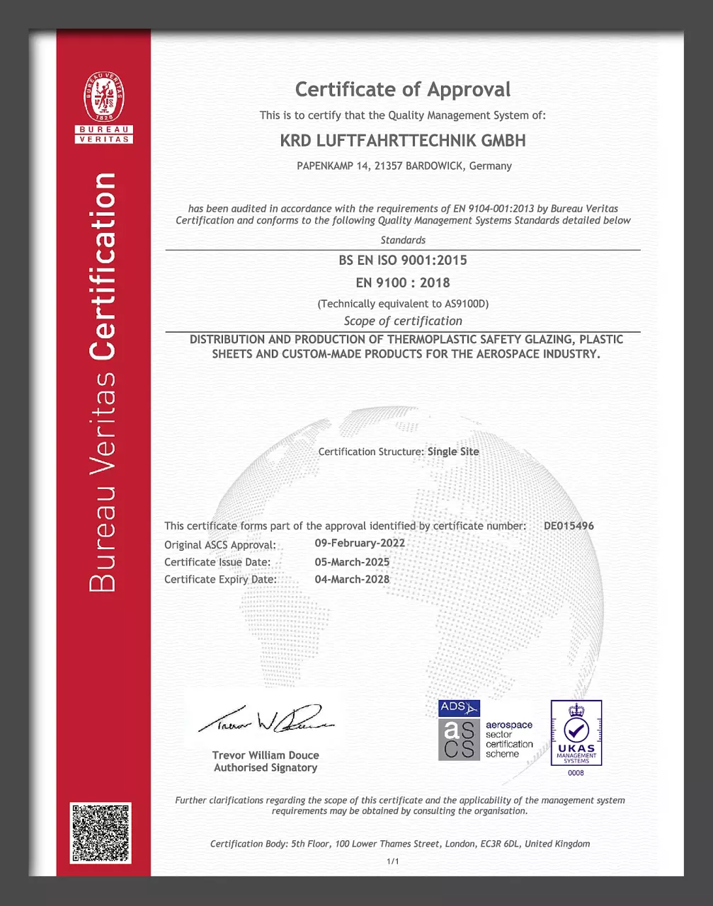 QM Zertifikat nach BS EN 9100:2018