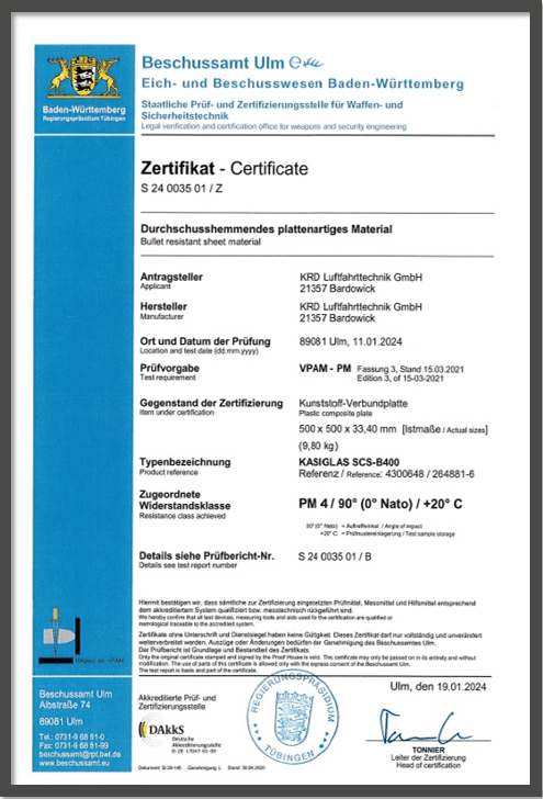 Die Prüfzeugnisse für Beschussklasse 4