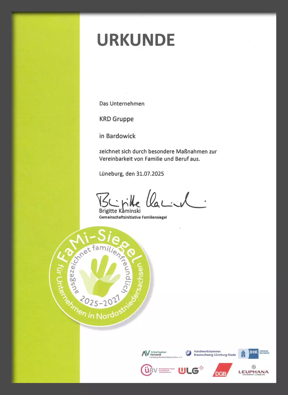 Prüfzeugnis/Zertifikat Einbau